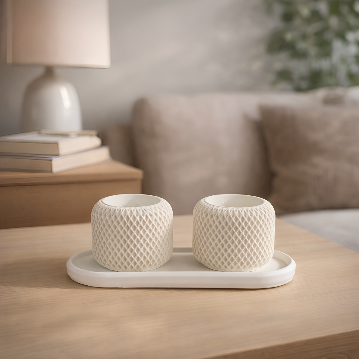 Facet Grid Sukulent Beton Saksı – 2'li (Tepsili), iki adet geometrik dokulu beton saksı ve uyumlu tepsisiyle dengeli ve sade bir kompozisyon sunar. Ne tekli kadar minimal ne de çoklu setler kadar yoğun; tam kararında bir düzen sağlar. Sehpa, komodin, raf veya konsol üzerinde kullanıma uygundur. Tepsi, seti tek parça gibi algılanır hale getirirken yüzeyi korumaya da yardımcı olur. Mat ve nötr yüzeyi sayesinde modern, minimal ve çağdaş iç mekânlarla uyum içindedir.