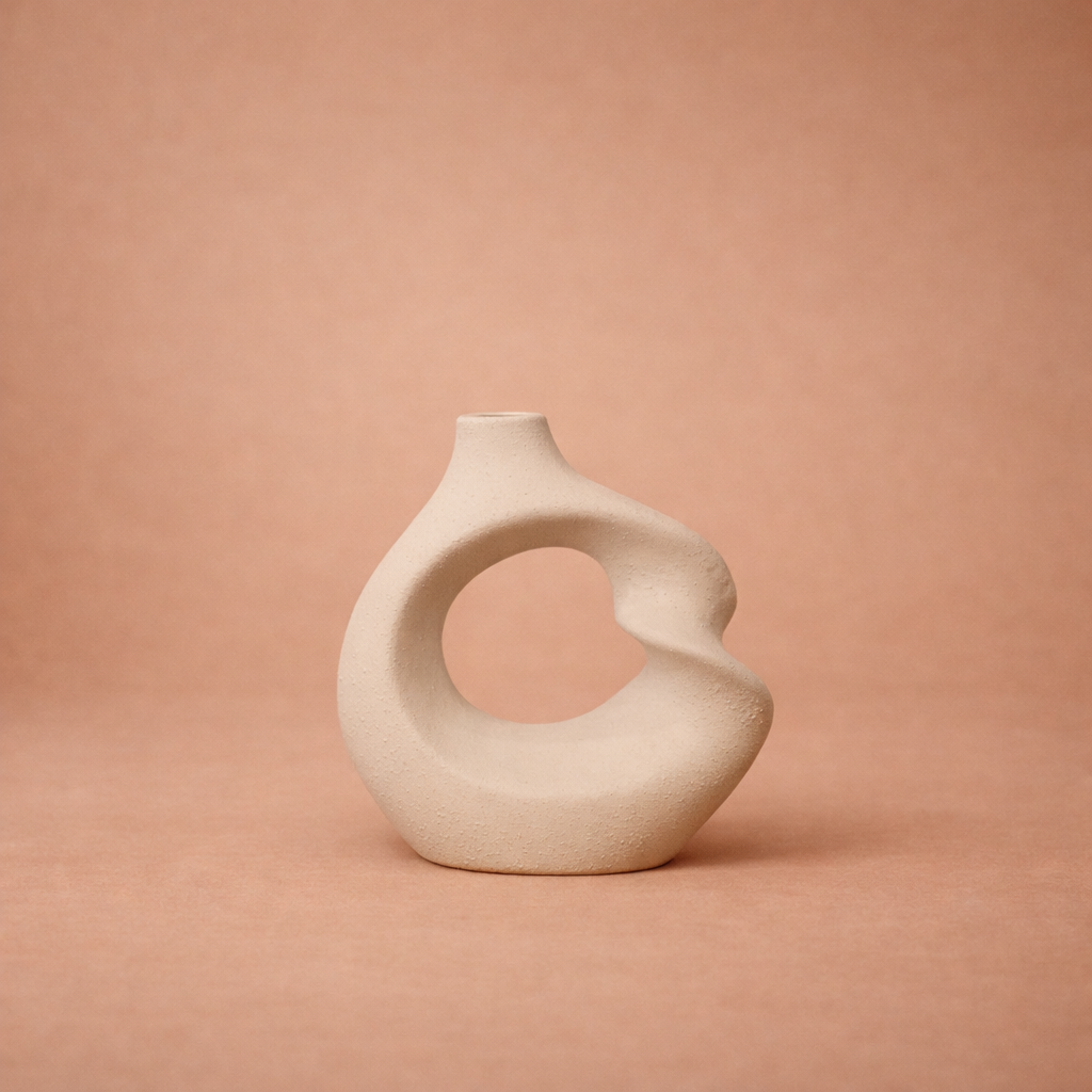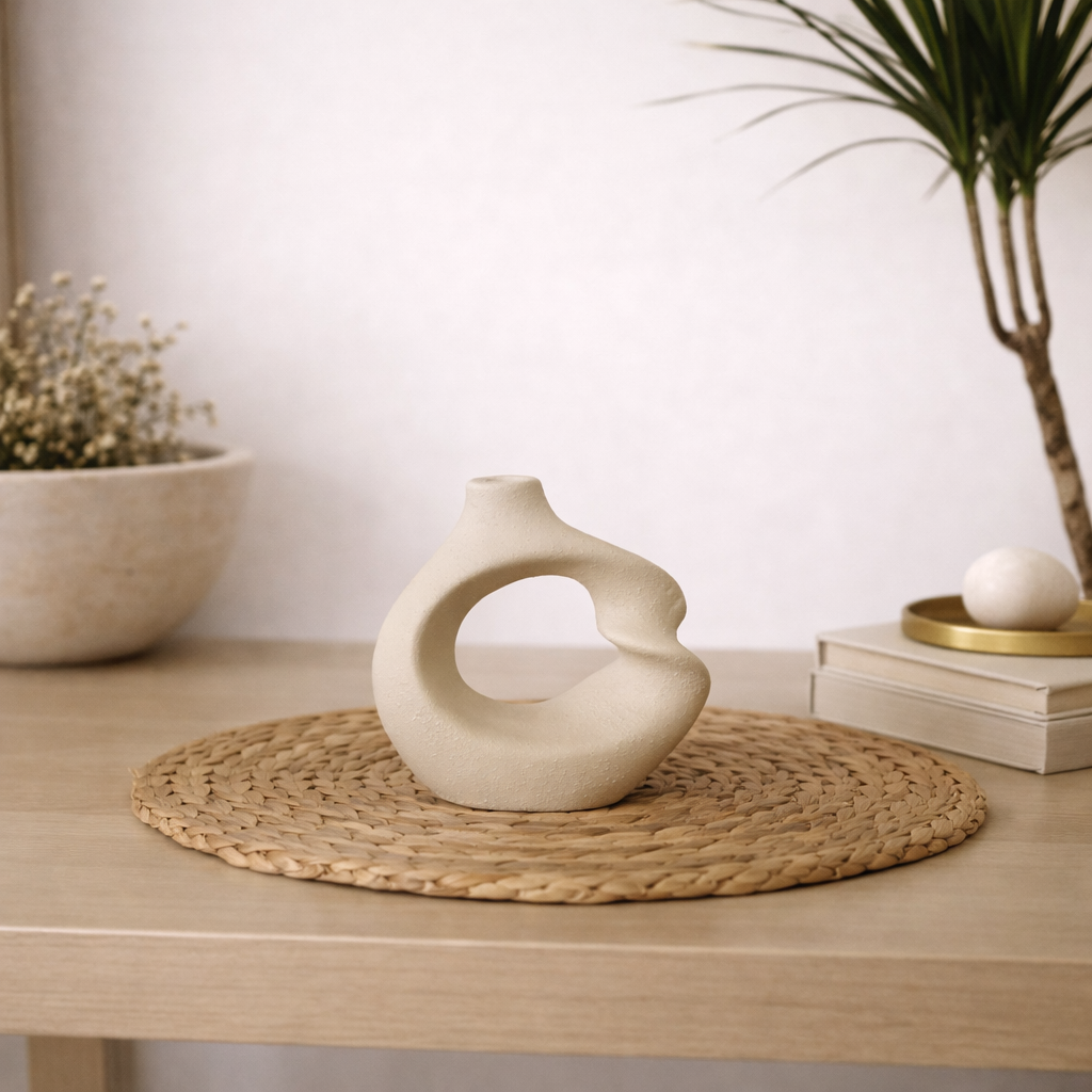 Ola Seramik Vazo, akıcı ve asimetrik formu ile modern dekorasyona sanatsal bir ifade kazandırır. İç boşluklu yapısı ve yumuşak kıvrımları sayesinde mekânda hareketli ama dengeli bir duruş sergiler. Doğal beyaz tonu ve mat yüzeyi, vazoya zamansız ve ferah bir karakter kazandırır. El yapımı dokusu her parçayı benzersiz kılar. Tek başına dekoratif bir obje olarak kullanılabileceği gibi, minimal kuru dallar veya tek dal çiçeklerle de şık bir kompozisyon oluşturur. Konsol, sehpa ve raf dekorasyonlarında modern ve doğal bir atmosfer yaratmak isteyenler için ideal bir parçadır. Lea Concept’in sade ve estetik anlayışını yansıtır.